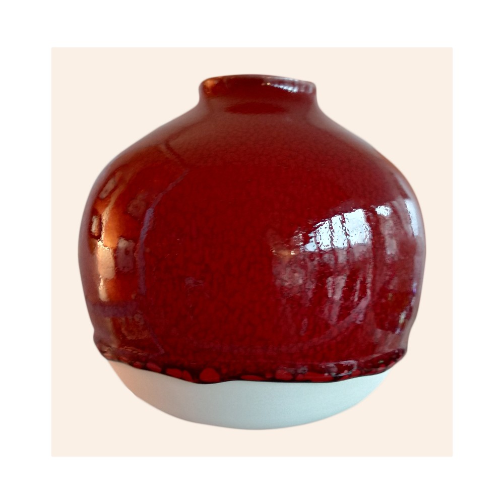 Vase en forme de boule en grès avec un très bel émaillage extérieur et intérieur brillant et mat.