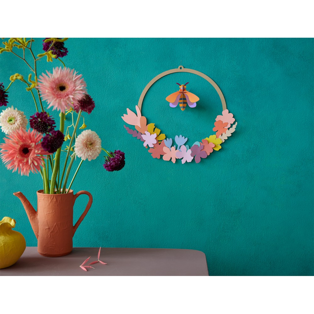 "Cette couronne de fleurs, faite à la main, apportera une touche naturelle dans votre maison. Une petite abeille a également fait son entrée dans le bouquet!" Studio ROOF
